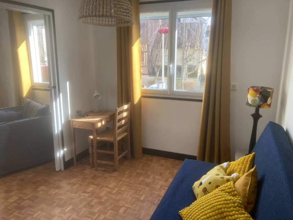The bright, ground-floor apartment can accommodate up to 4 people. It is 30 minutes from all amenities. Travelers enjoy a peaceful, enclosed garden to share. Free street parking nearby. Beds made up on arrival.