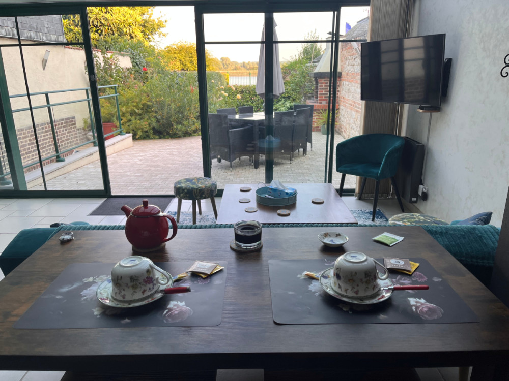Vous trouverez une cuisine toute équipée, une véranda donnant sur le jardin avec vue sur la Seine, une salle salon avec au milieu un billard. Au 1er étage un bureau pour le télétravail, une chambre vue Seine avec un lit en 160, une salle de bain avec douche à jets ainsi qu'une laverie avec machine à laver.