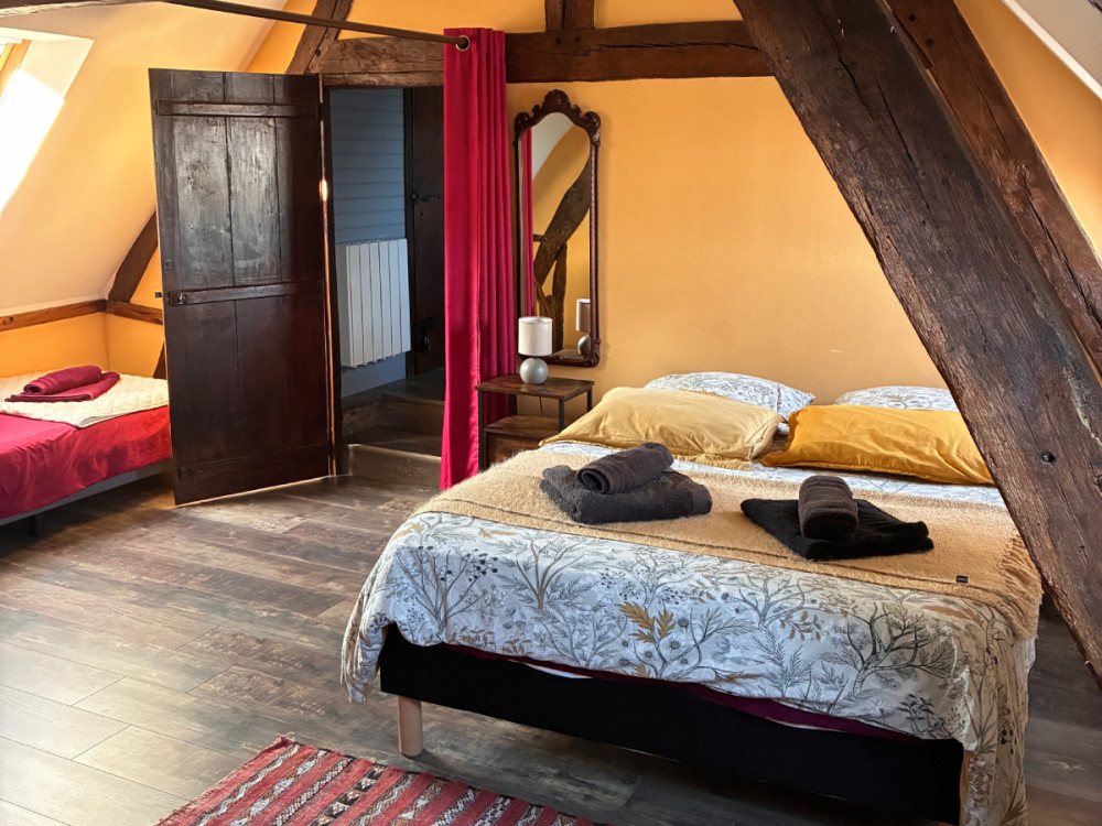 Au 2ème étage 2 chambres avec lits en 140 et parmi une des chambres, 1 lit enfant en 90 et un lit bébé.